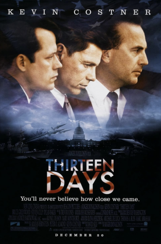 Denne gamle politiske thriller fra 2000, Thirteen Days, har med Ruslands invasion af Ukraine desværre fået noget aktualitet. Filmen foregår i løbet af 13 dage i oktober 1962 og handler om Cuba-krisen, da verden var på randen af en atomkrig. Måske den kolde krigs mest dramatiske dage. USA havde opstillet atombevæbnede missiler i Tyrkiet og Italien. Som et modtræk var Sovjetunionen ved at opstille lignende missiler på Cuba, som kunne nå USA, så der måtte gøres noget.